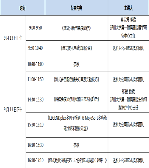 金秋九月,達(dá)科為流式培訓(xùn)班要來(lái)鄭州啦,名師講解,理論與實(shí)驗(yàn)雙管齊下,輕松完成流式八色檢測(cè)分析,更有LEGENDplexTM多因子Demo演示,磁珠分選Demo以及De Novo 流式軟件數(shù)據(jù)分析演示。流式上機(jī)名額有限,歡迎踴躍報(bào)名!