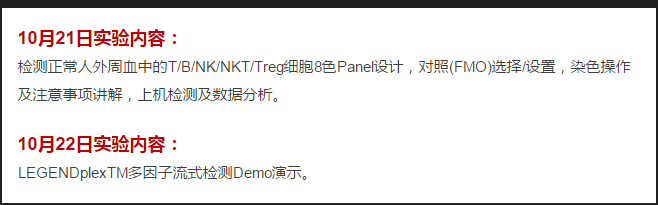 黃金十月,達(dá)科為流式培訓(xùn)班要來沈陽啦,專業(yè)講解,理論與實驗雙管齊下,輕松完成流式八色檢測分析,更有LEGENDplexTM多因子Demo演示。流式上機(jī)名額有限,歡迎踴躍報名!