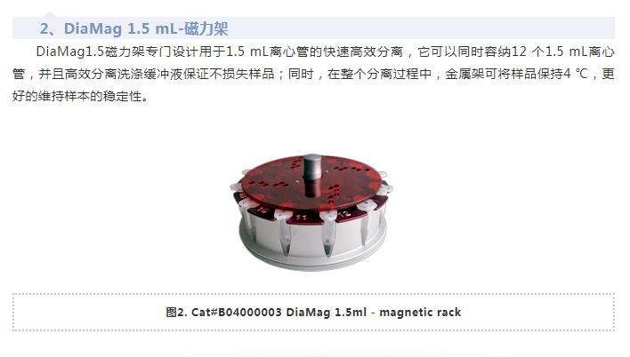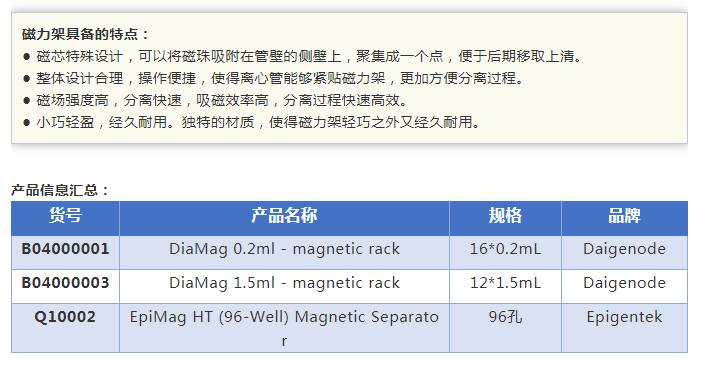 在分子實驗過程中,磁珠法核酸純化、磁珠法免疫沉淀實驗如:IP,Co-IP,ChIP等,都需要一個高效金屬磁力架,它不僅可以實現(xiàn)核酸和蛋白質(zhì)的高效磁珠分離,還可以簡化實驗操作提高實驗效率。隨著磁珠在核酸或蛋白分離方面的應用普及,磁力架成為了實驗室的必備小工具。
