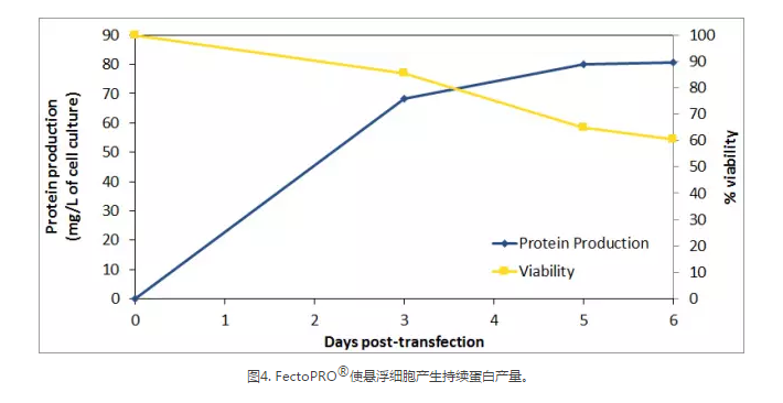 過去幾年,蛋白質(zhì)生產(chǎn)的持續(xù)時(shí)間有所增加,大部分蛋白質(zhì)生產(chǎn)過程持續(xù)1~2周,以獲得最佳的蛋白產(chǎn)量。FectoPRO?確保幾天內(nèi)產(chǎn)生持續(xù)的蛋白產(chǎn)量,同時(shí)保持較高的細(xì)胞活力以延長蛋白生產(chǎn)。