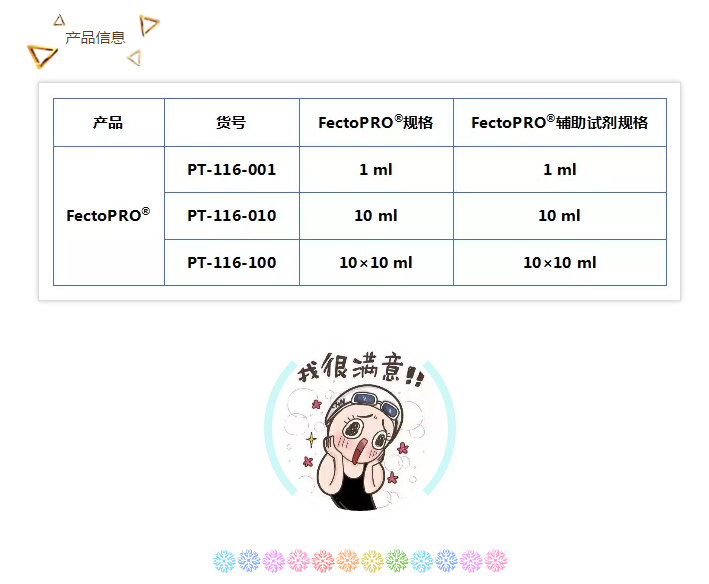 FectoPRO?保證不含動(dòng)物源成分,且限定化學(xué)成分。每個(gè)生產(chǎn)批次都經(jīng)過系統(tǒng)化的批次管理和出廠測(cè)試。采用先進(jìn)的質(zhì)控流程:蛋白質(zhì)生產(chǎn)率、細(xì)胞活性及完全無菌。