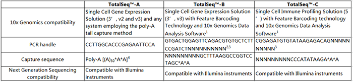 *注:N表示隨機選擇A, C, G或者T。所有Totalseq?-B、C和NYGC抗體都與10X基因組方案相兼容。符號*表示磷酸硫鍵,以防止核酸酶降解。