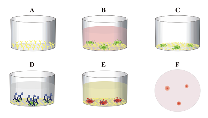 加入顯色底物,在酶的催化分解下,生成不可溶的色素,沉淀在膜上,即形成斑點;斑點計數(shù),結(jié)果分析。