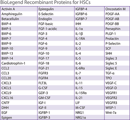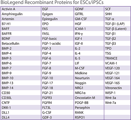 BioLegend提供多種重組蛋白,可幫助維持胚胎干細胞、誘導多能干細胞、造血干細胞、間充質(zhì)干細胞和神經(jīng)干細胞的多能性或誘導它們分化。下面我們一起了解一下重組蛋白在幾種干細胞中的應(yīng)用。