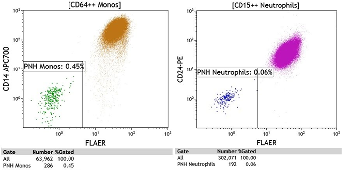Sutherland DR, Kuek N, Azcona-Olivera J,etc. Use of a FLAER-based WBC assay in the primary screening of PNH clones. Am J Clin Pathol. 2009 Oct;132(4):564-72.