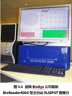 德國(guó)Bio-Sys公司從上世紀(jì)80年代開(kāi)始就致力于生物圖像識(shí)別領(lǐng)域,在進(jìn)入ELISPOT圖像分析儀市場(chǎng)后一直以其先進(jìn)的ELISPOT斑點(diǎn)識(shí)別技術(shù)聞名。德國(guó)Bio-Sys公司首先解決了顯微攝像系統(tǒng)難以定位96孔板上的每一個(gè)孔的問(wèn)題。其解決方法基于圖像識(shí)別技術(shù),利用板孔邊壁和真正的孔底的細(xì)微差別,在機(jī)械定位的基礎(chǔ)上,通過(guò)軟件識(shí)別來(lái)進(jìn)一步提高每孔的定位精度。是目前市場(chǎng)上所有ELISPOT圖像分析儀中唯一能夠完整識(shí)別整個(gè)孔底ELISPOT斑點(diǎn)圖像的設(shè)備。在對(duì)真假斑點(diǎn)的分辨中,德國(guó)Bio-Sys公司除了具備完善的物理學(xué)多參數(shù)識(shí)別技術(shù),還特別針對(duì)ELISPOT斑點(diǎn)形成的生物學(xué)過(guò)程,通過(guò)細(xì)胞因子顯色后的“光密度”峰值積分分析方法,精確分辨真假斑點(diǎn)、融合斑點(diǎn)等復(fù)雜情況。Bioreader系列ELISPOT圖像分析儀國(guó)外大多數(shù)較有經(jīng)驗(yàn)的ELISPOT實(shí)驗(yàn)室推崇的特點(diǎn)為:專業(yè)性和參數(shù)全開(kāi)放性。因?yàn)镋LISPOT實(shí)驗(yàn)的復(fù)雜性,ELISPOT斑點(diǎn)形成在不同的實(shí)驗(yàn)條件下有非常大的差異。這就對(duì)ELISPOT圖像分析儀提出了較高的要求:既要能夠保證斑點(diǎn)計(jì)數(shù)的真實(shí)性和一致性,又要能夠根據(jù)不同情況,通過(guò)實(shí)驗(yàn)者的判斷來(lái)校正儀器對(duì)ELISPOT斑點(diǎn)識(shí)別的標(biāo)準(zhǔn)。要同時(shí)實(shí)現(xiàn)以上兩個(gè)要求,唯一的辦法是將儀器的所有判斷標(biāo)準(zhǔn)向ELISPOT實(shí)驗(yàn)者開(kāi)放,實(shí)現(xiàn)實(shí)驗(yàn)者和儀器的互動(dòng)。在這一方面,德國(guó)Bio-Sys公司始終走在ELISPOT斑點(diǎn)識(shí)別領(lǐng)域的前列,新的Bioreader-4000型(圖8.3)和Bioreader -5000(圖8.4) 型在專業(yè)性和適用性方面都領(lǐng)先于其他廠家的設(shè)備。